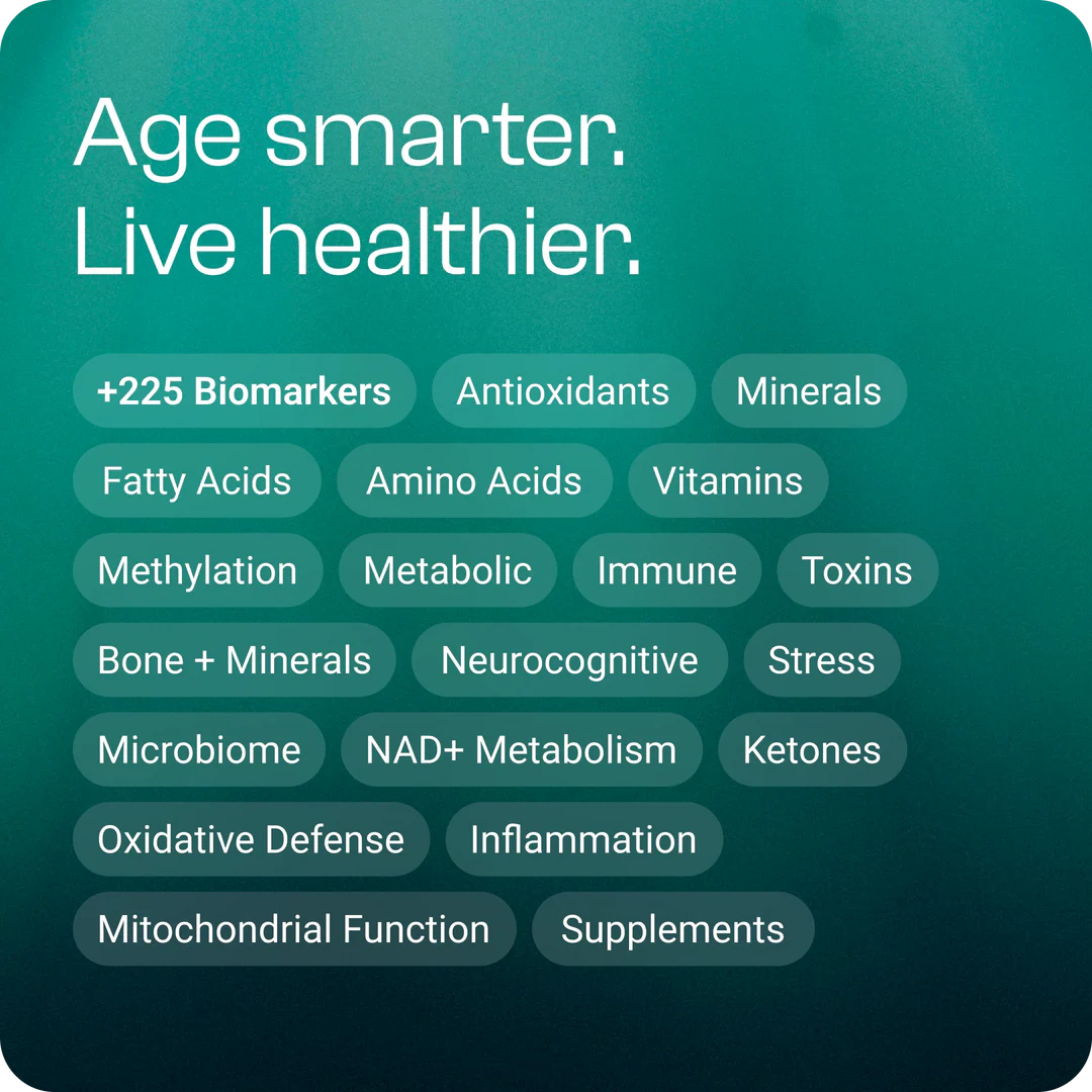 This comprehensive at-home testing kit analyzes 180+ advanced blood biomarkers to deliver a deep, system-by-system snapshot of your biological health.